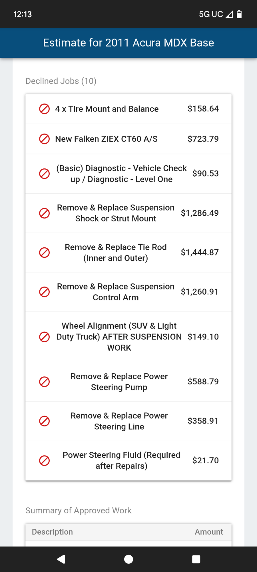 Minor correction... Mileage is 222,524 on the MDX vice 225K. Just got the car back and still drive great. If it wasn't for the tire wear, I wouldn't have thought there was issues with the suspension.