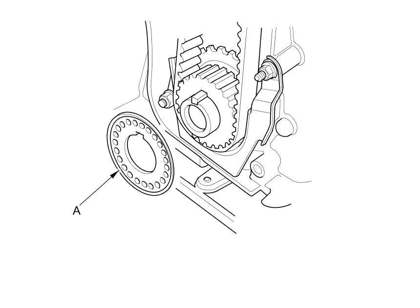 13.Remove the timing belt guide plate (A).