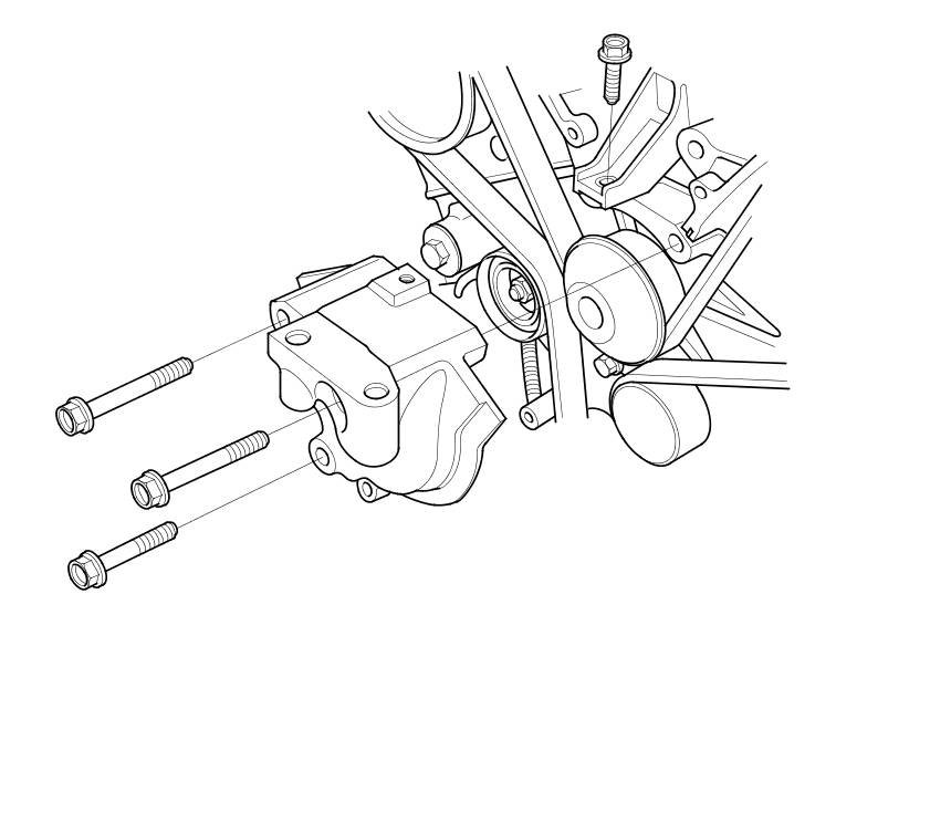 12.Thread the battery clamp bolt in as shown to hold the timing belt adjuster in its current position. Tighten it by hand, do not use a wrench.