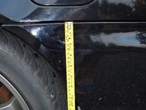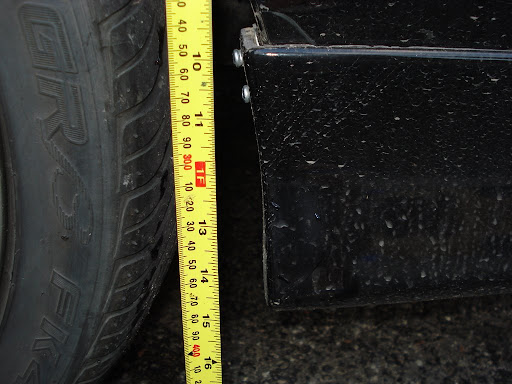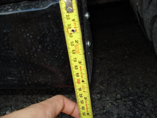 Rear driver side measurement of the side skirt - about 4.5 inches