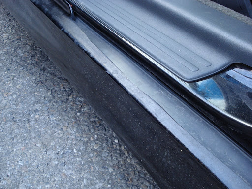 Driver side door showing what was cut - Leave about 1 inch so that the cut will not show where the side skirt meets the rear quarter panel
