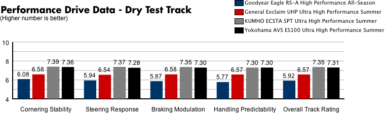 All of which are excellent tires and in the hands of a skilled driver can out perform much better and much, much more expensive tires in the hands of a novice.