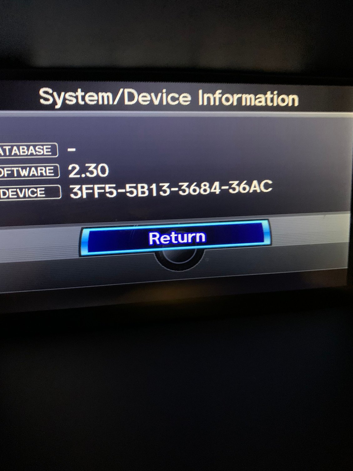I was using the information on the acuranavi site to get my existing IDs for the navigation update (The Official Acura Map Update Site | Find Id | HERE) but the database version shows up as just a dash.