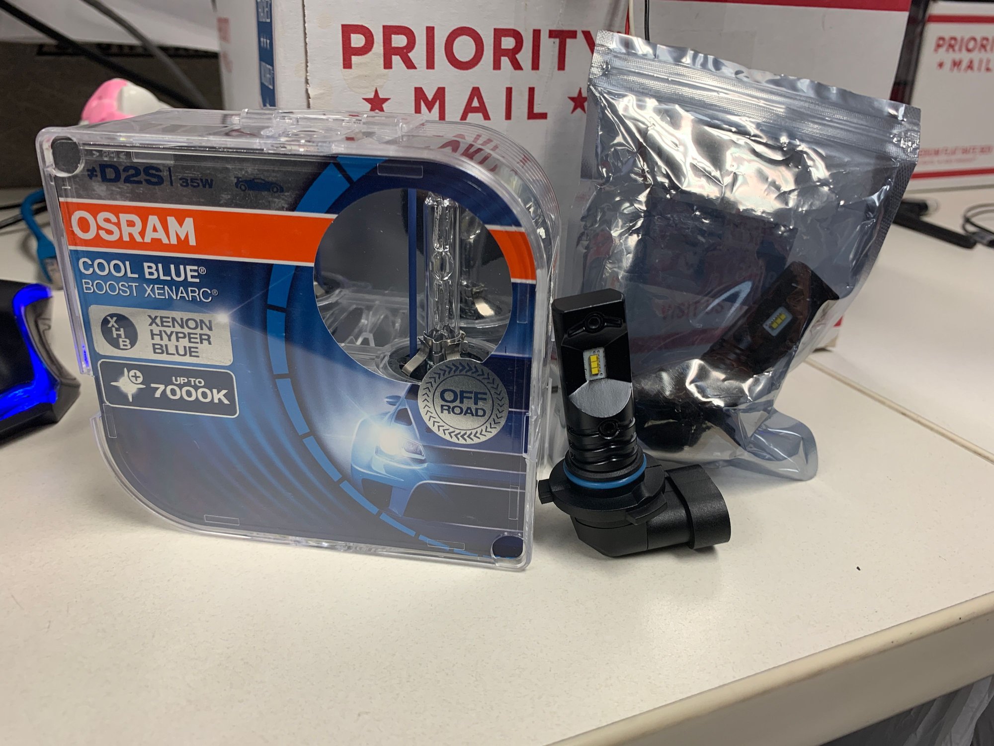 I used Osram Cool Blue Boost D2S bulbs, and Xenon Depos 5000K 9005’s for the DRLs. With Diodes older SLF H11 fogs.