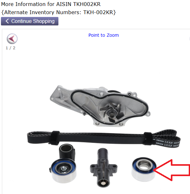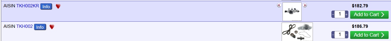 The two Aisin kits (same fitment for your 08 RL) below from rockauto are a good choice to save $$ over OEM components; however, looking at the two pictures and the price intervals, the only obvious difference is the color of the pulley bearing 'rubbers' & maybe the belt markings?