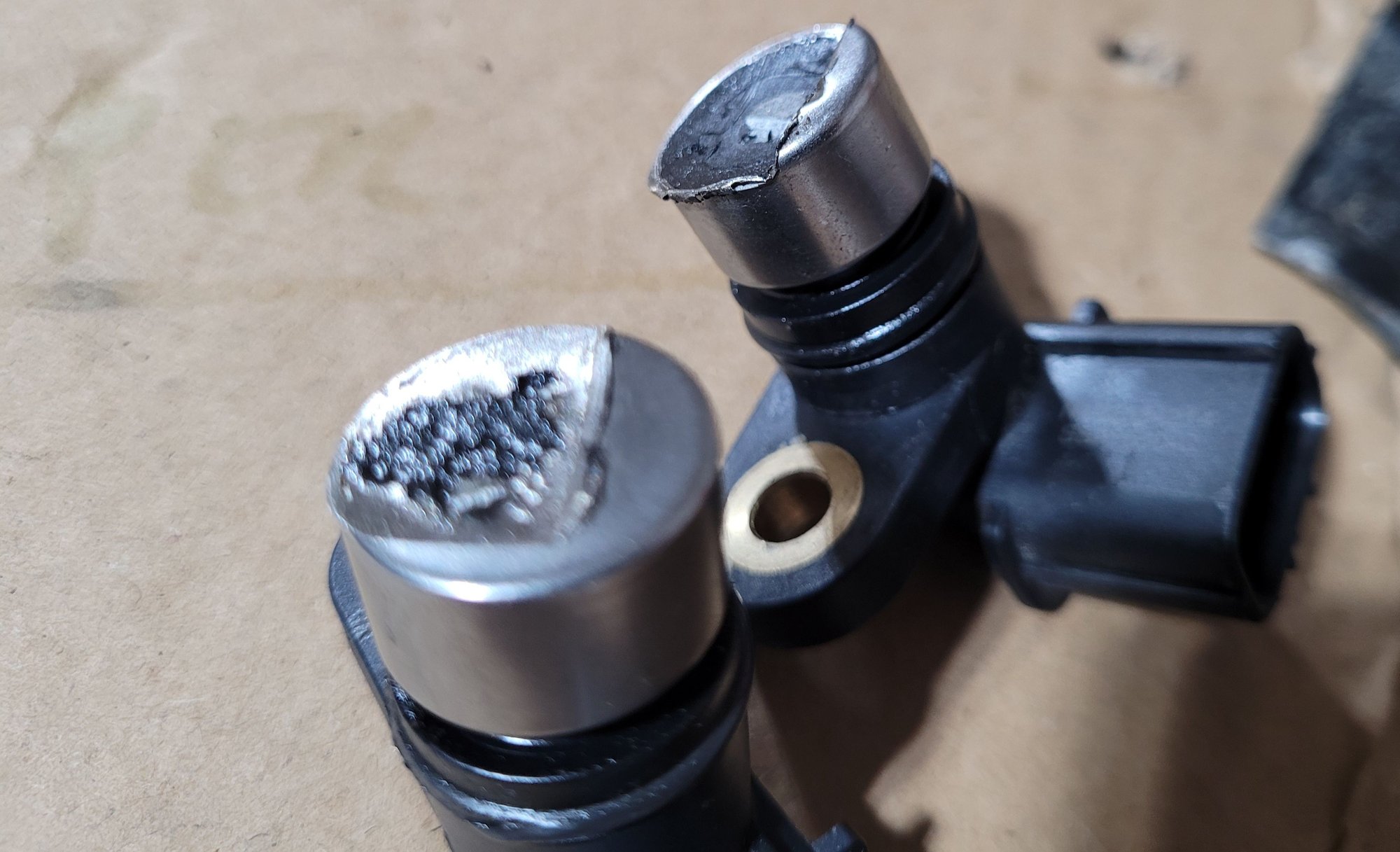 Saturday night, for the second time in 3 months, it threw the medley of warning lights. I replaced the sensors (input and output) in April. I noticed immediately a new high pitched whine. I am assuming by the destroyed speed sensors (pictured) the bearing is toast and shaft is wobbling. I have looked allover and not finding much on a trans swap for these. I bought 2 more sensors, put them in yesterday and drove it about 500 feet, once in gear, I heard whine noise. Got code. Went back in garage, there is already a bad mark on the output sensor. (side note, I know access by removing the top engine pull off cover and tran dipstick, feel around to remove). I also shimmed each a tad more to no avail.