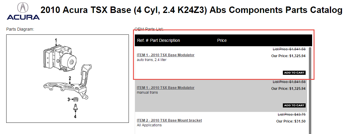 So I did some research and back then every website had the TSX V6 ABS modulator for $1,850 maybe $1,700. I called back the rep and told them to proceed with the service, knowing that I would pay just about $2k.