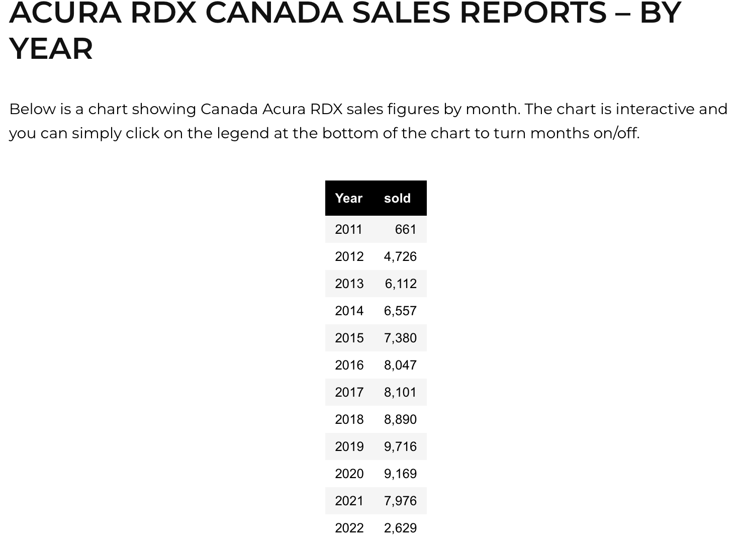 Here is all the data for Canada and USA sales by year for each model.