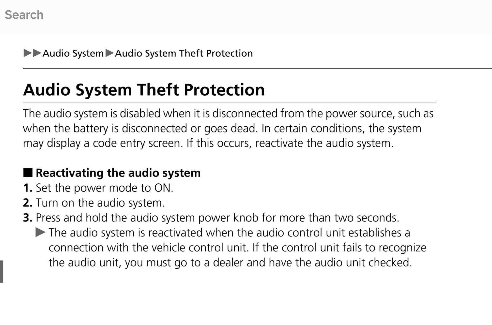 That causes the radio to compare it's internal ID with the one stored in the RDX's computer. If they match, then the radio belongs in that vehicle, and it becomes unlocked. If the numbers don't match, then that radio came from somewhere else, and it will remain locked.