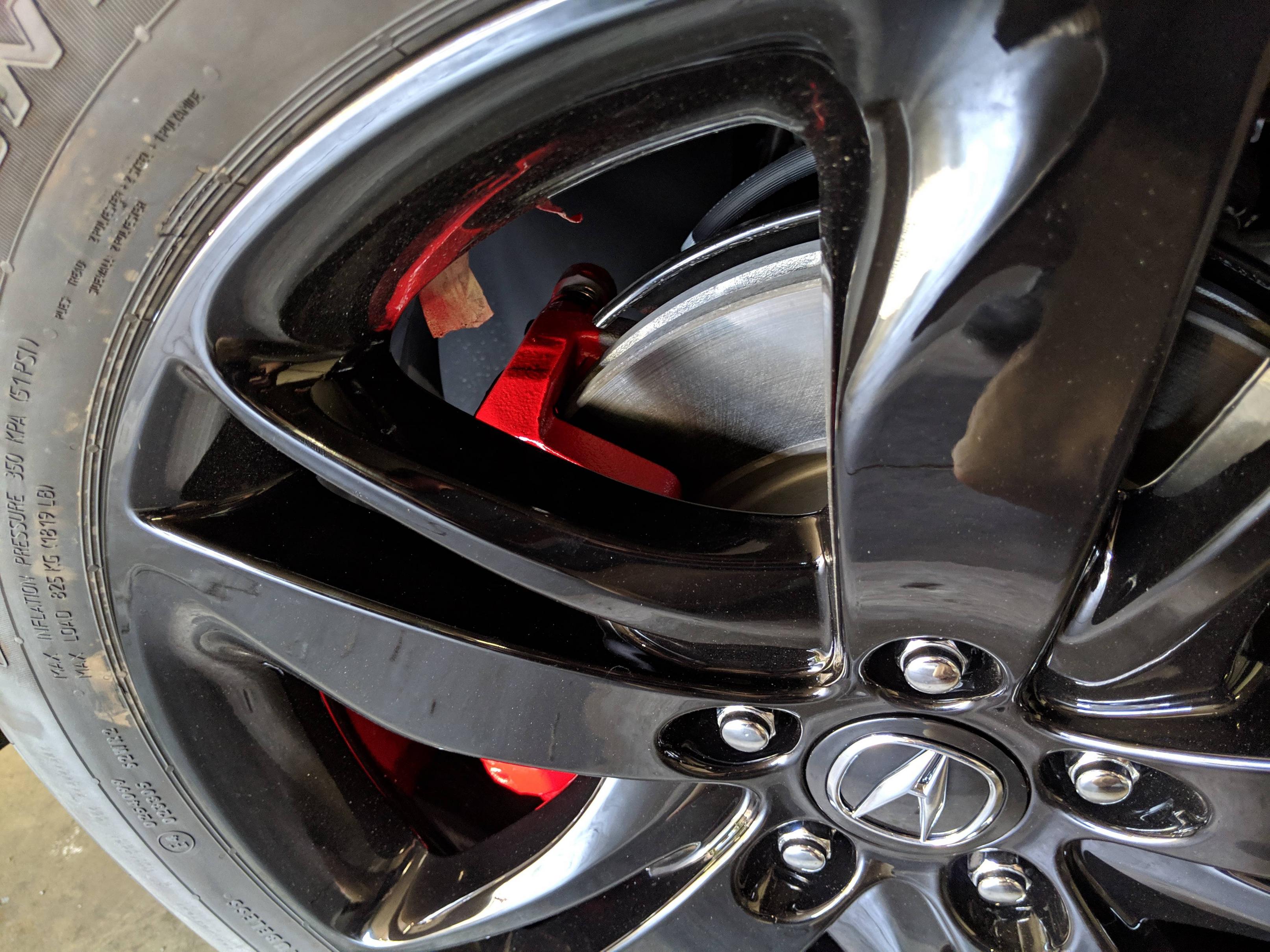 Hey everyone! I had the stock OEM Advance wheels gloss powder coated with black center caps, and the calipers painted red. I was debating between satin and gloss but ended up with gloss to match the center caps. Pictures below: