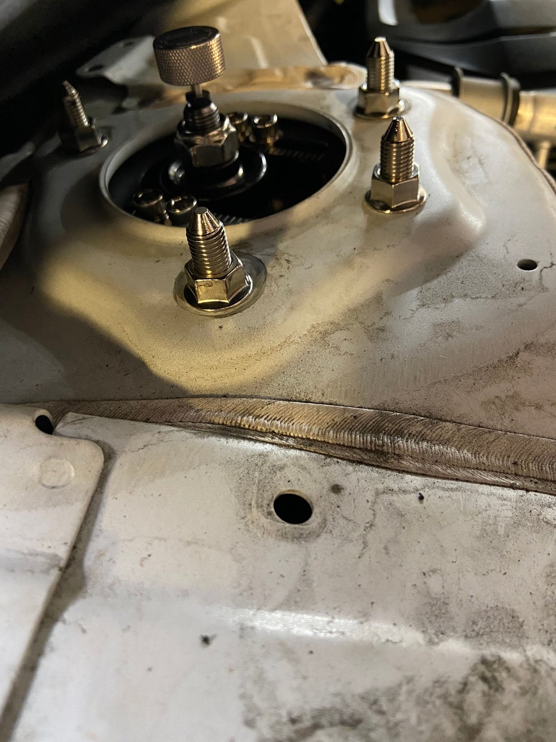 2. The indent in the lower coilover housing was off a bit for letting the mount bolt fit through. This just required a little grinding to elongate the indent for the bolt clearance. You are not grinding the actual shock, just the lower housing that the shock threads into so its no big deal.