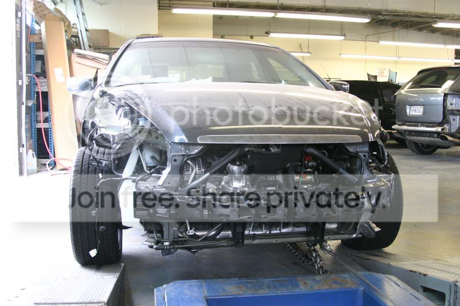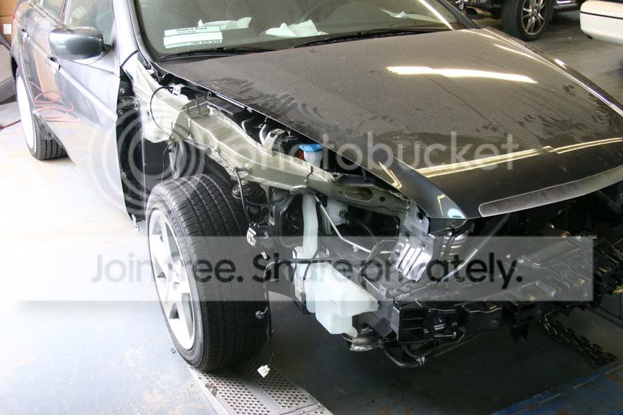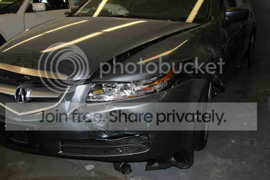 When I crashed my Tl, we did around $9k worth of damage, it wasnt totalled either, however my front end looked about the same as yours. If I can recommend a great body shop, in the southern cali area, Philip Thearle's Autowerks, fixed my entire car, and it is amazing, I honestly cannot tell that my TL was in a crash, however since these cars are so new, and getting replacement parts is near impossible, took around 2 months to fix. If you have any questions, please feel free. I have photos if your interested of before and after, and I have add alot of issues with my TL, I recieved it back in December, so its an early Vin #, and it has all those wonderful problems :'( But it's a great car, and depending on your insurance, you can get it fixed to where it looks brand new, I must insist stay away from Acura dealerships body shops, they are not qualified in my opinion to work on the cars, and personally they do shitty work, Philip Thearle works on Mercedes, Jaguars, Porsches, Volvos, Rollys Royces, BMWs, Lexus and Acuras, and the work is top notch, They are located in Santee, CA. Best of luck with the vehicle.