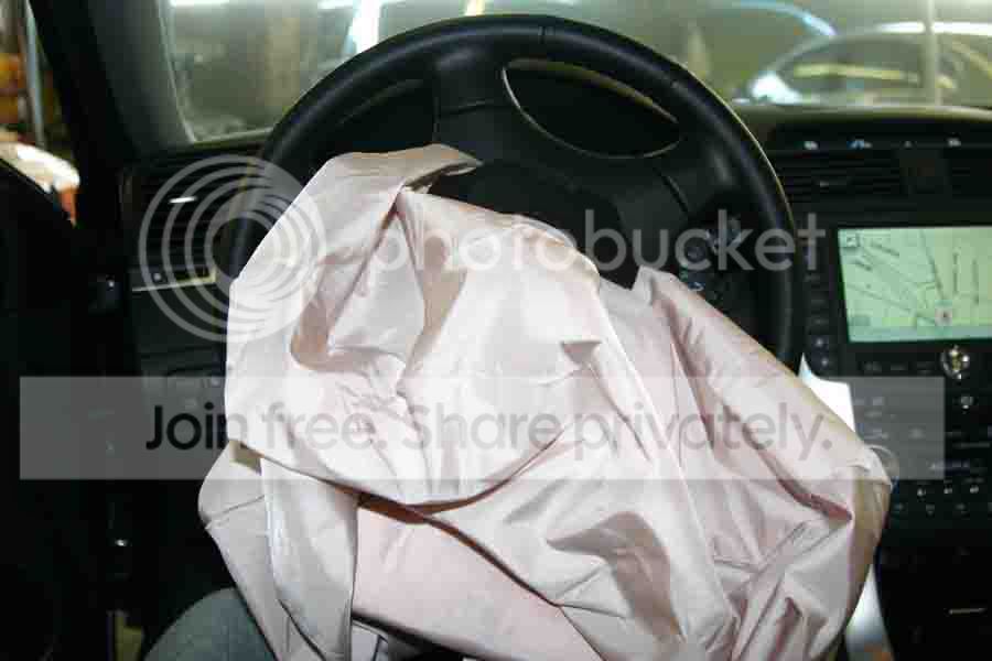 I guess the 2 stage air bag system works if you said it seemed to come out slow. One good thing about leather and air bag dust it is easly cleaned. You will find it though for many car washes after you get her back. Usually to total a car it has to cost the issurance company more money to fix your car than the car is worth. So with a 35k car. You have to smack it pretty hard.