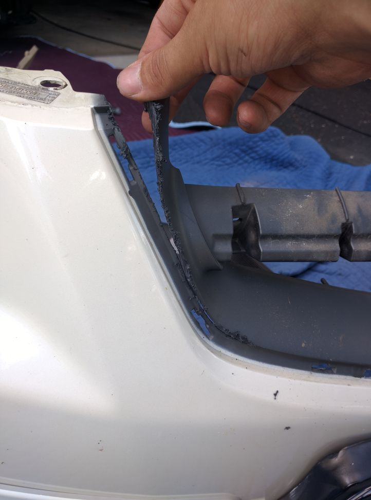 Before anyone asks, I did order the correct grill (04-06) since I have an 05 base model. I also cut out the entire grill (not just the cross bar) since I wanted everything to sit flush. Unfortunately, it's just not working. It's almost like the grill needs to sit a bit lower and the top "wing-like" edges that clip into the top of the bumper need to be cut off in order for the grill to drop into place.