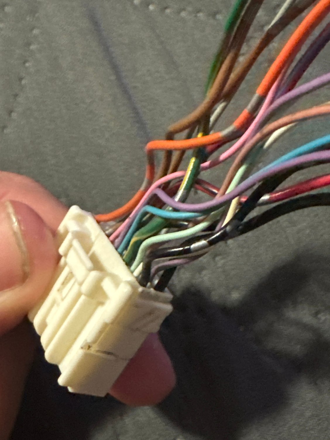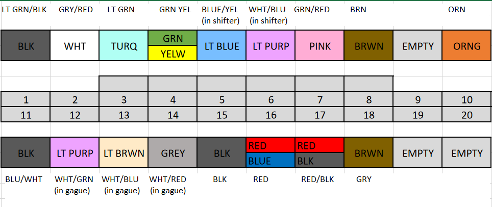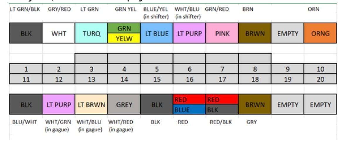 So, I just needed a 20-pin white plug and this is exactly the plug that I used for my conversion as well. Do not focus on the colors of the wires from your pigtail. Just focus on what pin location the wire comes from.