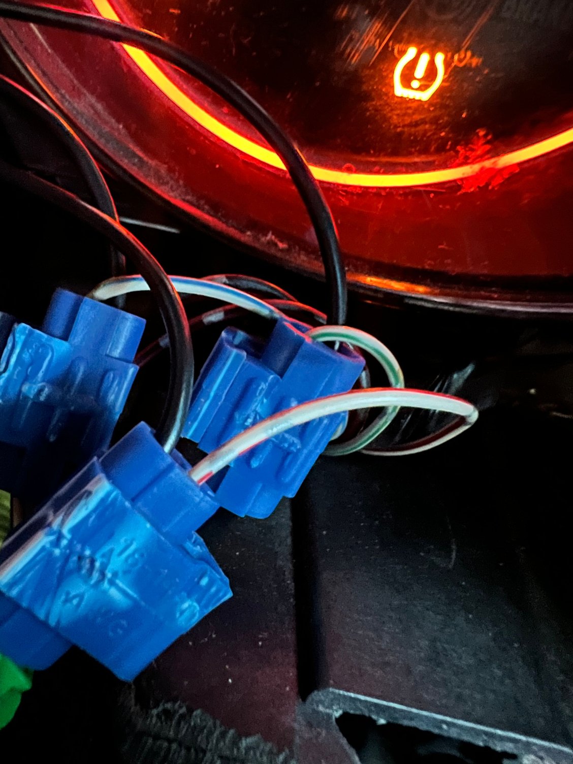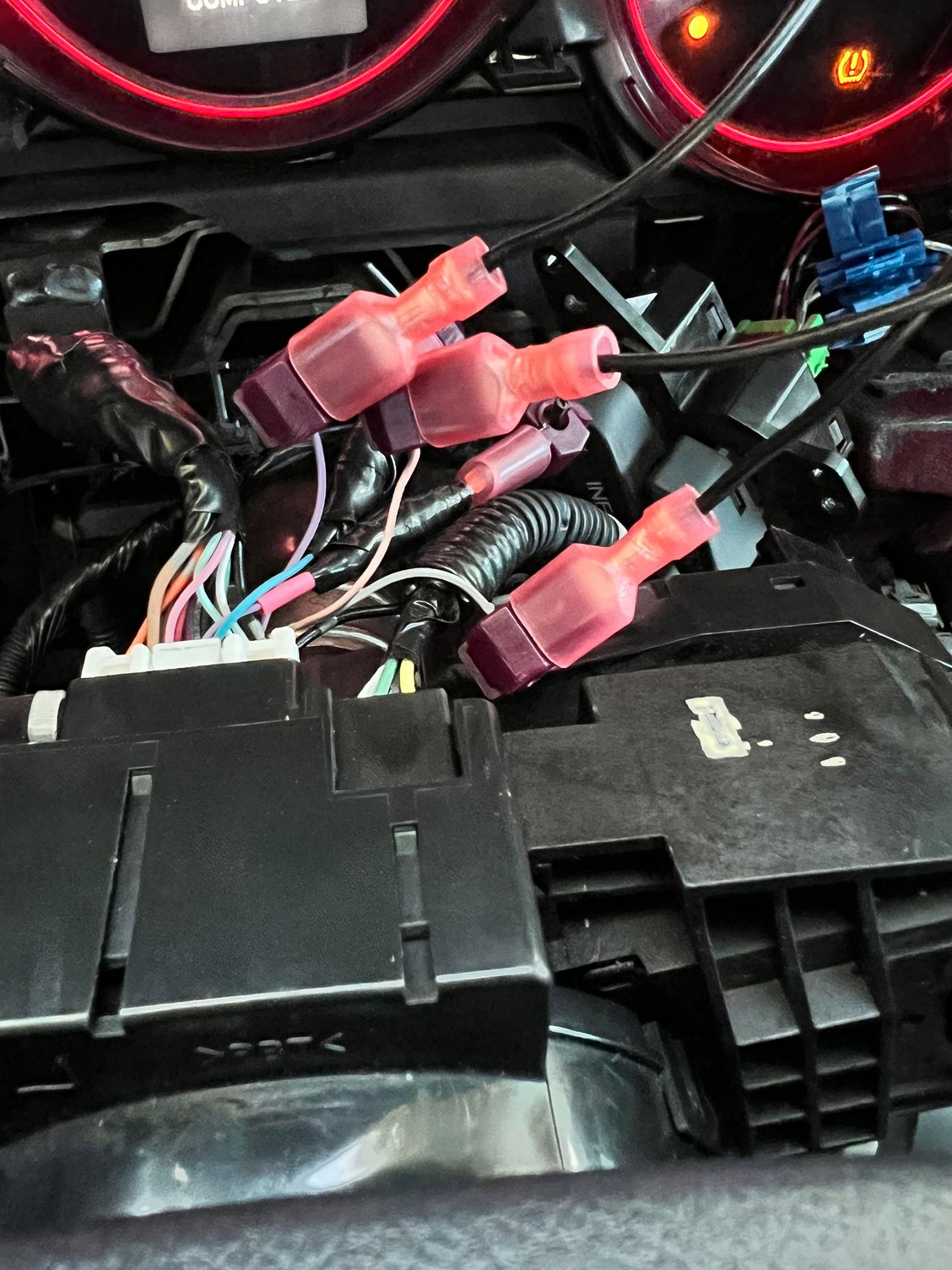 B. I also used T-taps and spade connectors to tap into the three wires for the Information Up, Information Down, and Select/Reset buttons. I don't have a good quality picture of this, but you'll see the necessary wire taps within my wiring harness to the right just below the gauge cluster.