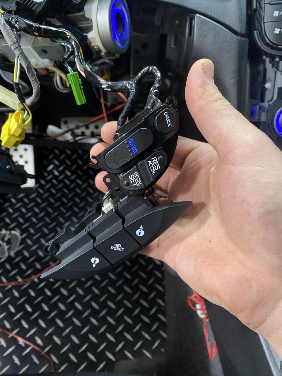 The buttons are all illuminated and the audio controls all work. However, the cruise button only works sometimes, the paddle upshift sometimes engages the cruise control, the paddle downshift does not work, the info buttons do not work, and select/reset button does not work.