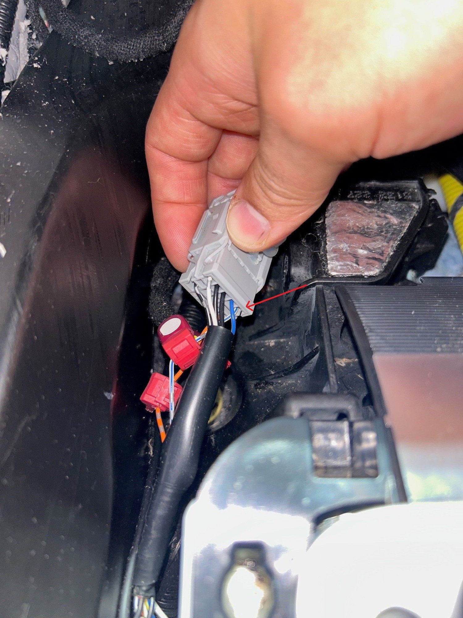 If you don't have the BLU/WHT wire present, my recommendation would be to tap into the wire that comes from the same pin location. For me, if you're sitting in the driver's seat looking down, it's the bottom right pin. As you'll see below, this is where my BLU/WHT wire is present. Try this and see if it works.