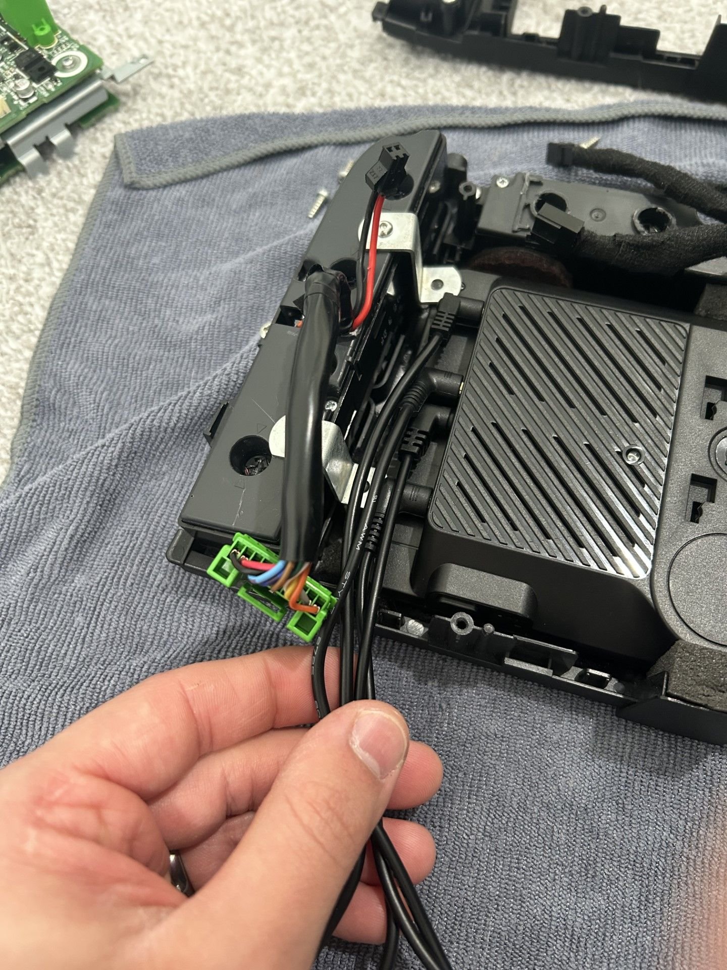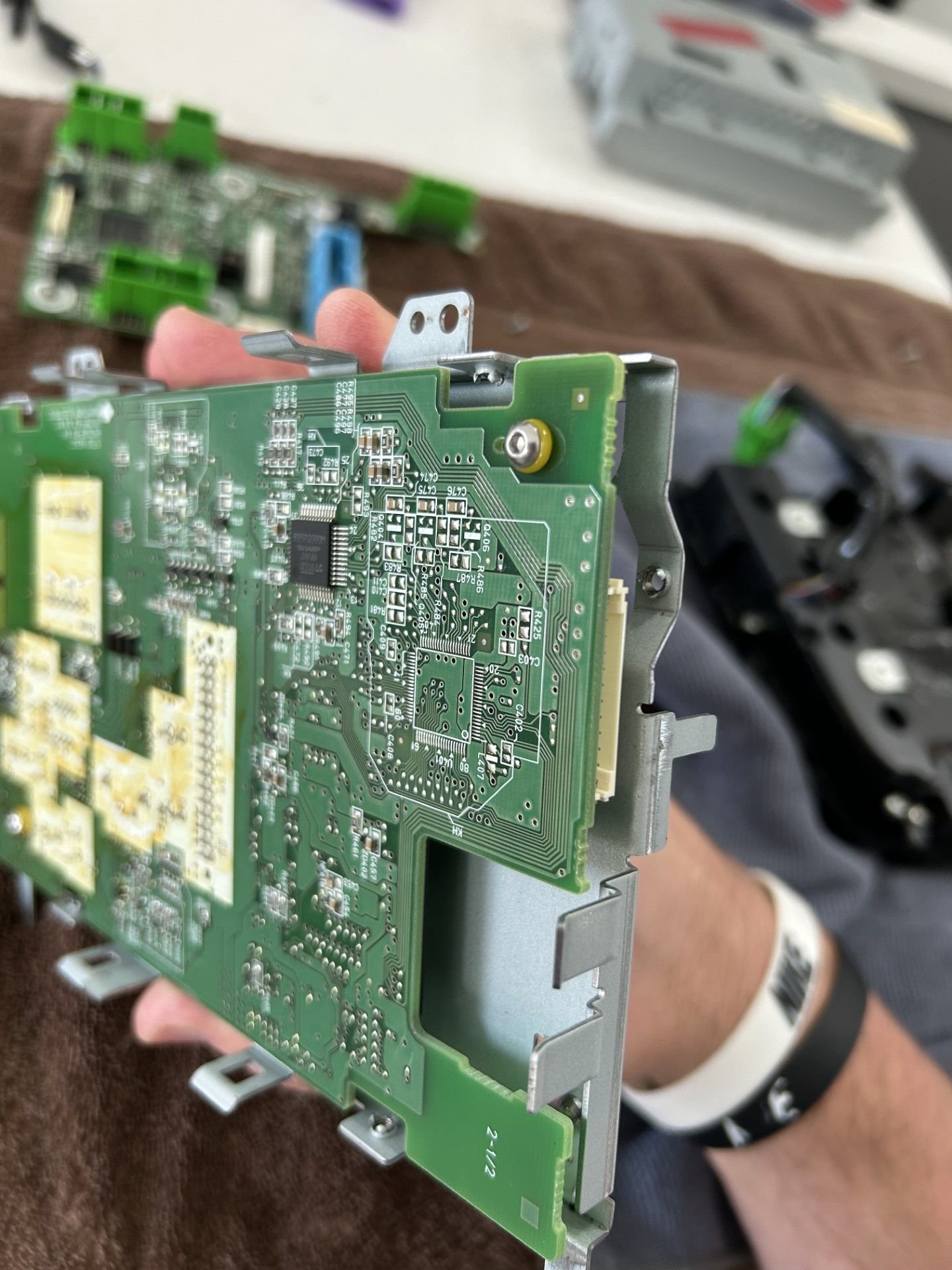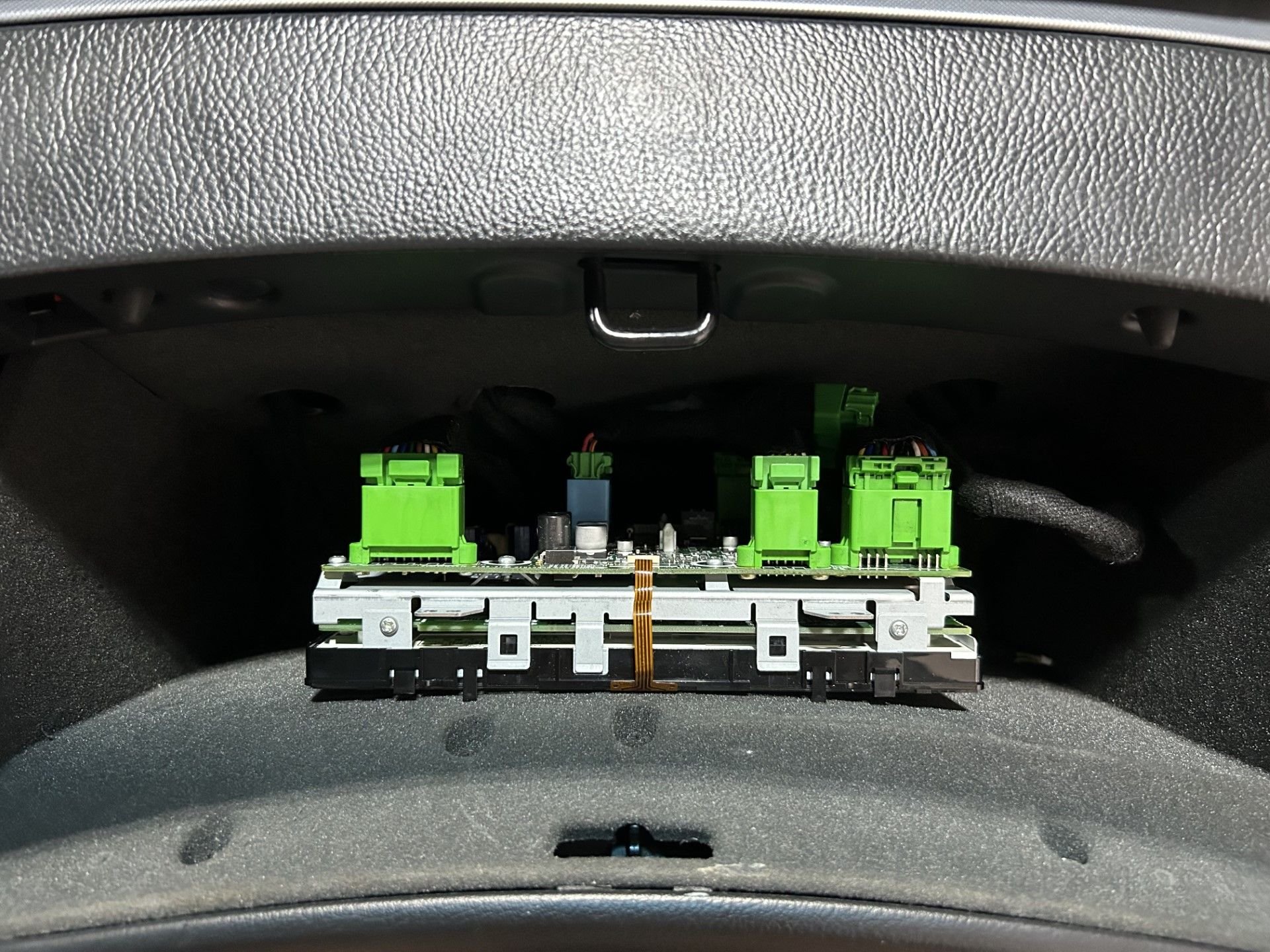 Additionally, the OEM navigation boards have to be re-mounted. This is because the OEM screen is removed and the screen’s bracket has mounting holes. Re-mounting the PCB boards required some careful repurposing of some fasteners and silicone washers that I made out of vacuum caps.