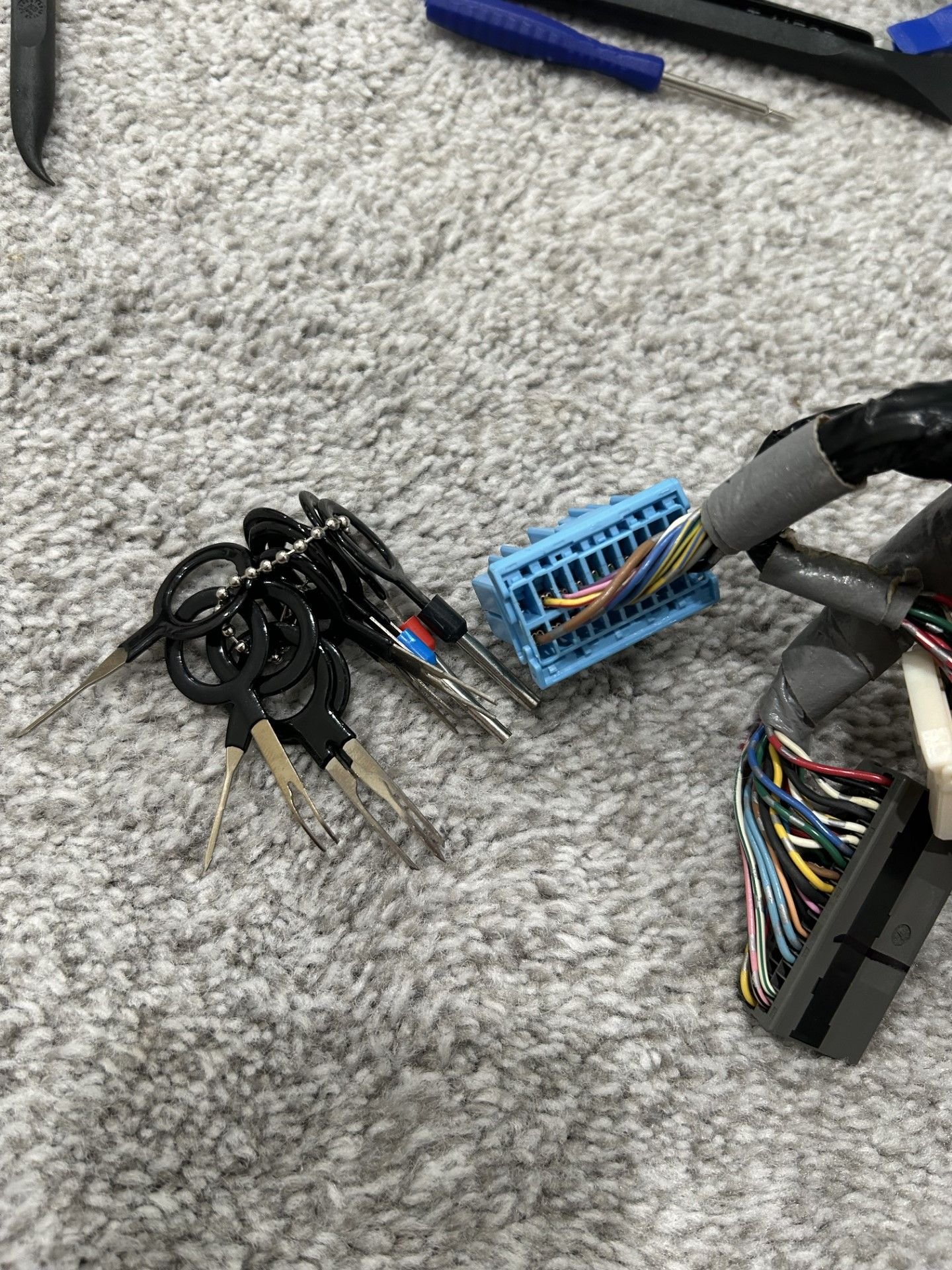 Long story short, I actually found an issue with two of the wires form Martin Pan’s navigation harness. The pins were broken, so I had to fix them, which I accomplished with a new radio harness from a Type-S radio that I pulled from the junk yard.