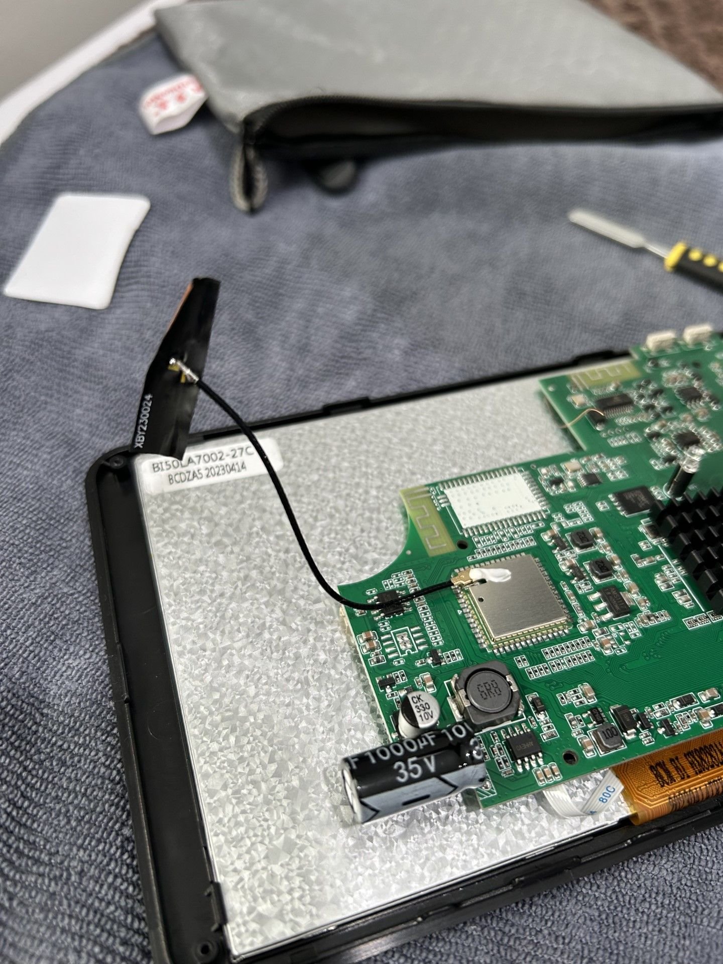The antenna’s cable was a very thin piece of copper wiring, which was glued to the back cover. I had I had to scrape off the glue.