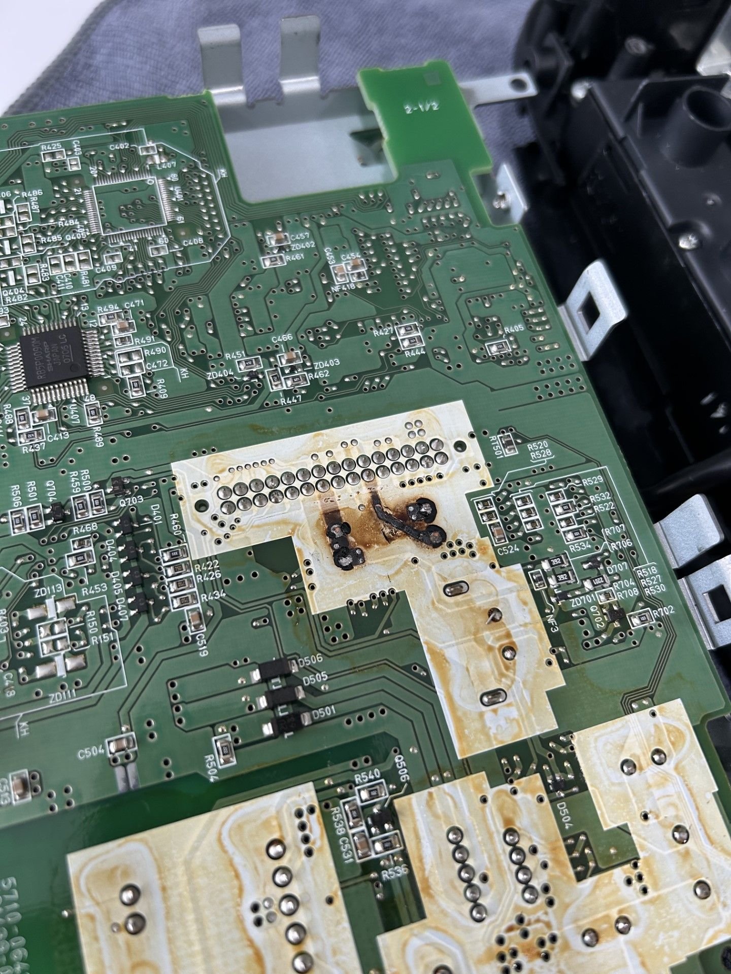 That little black box on the back of the Carpuride PCB board was scorching hot. It got hot enough that it burned my OEM navigation board and melted several electrical components.