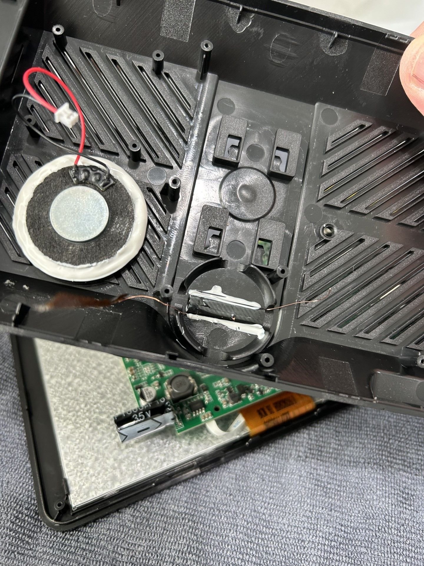 As I stated previously, many of these companies use the same Chinese manufacturers for their internal components. With the back cover removed, light could be seen through a hole in the plastic, where I assume a power button can be installed. As such, I covered this with a small piece of furniture pad foam. Even with the foam, the hole could still be seen.