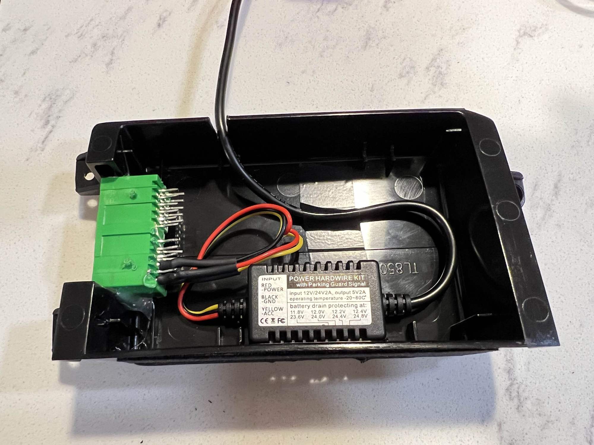 Here's the hardwiring kit wired and mounted inside HFL unit cover: