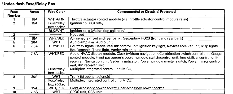 So no one has any info about the Back up ACC fuse under the hood? or what components that may be attached to it? when I pulled the fuse and start the car, the clock, radio, interior lights doesnt come on and the heater/ac come on automatic and i cant control the temp or fan speed.