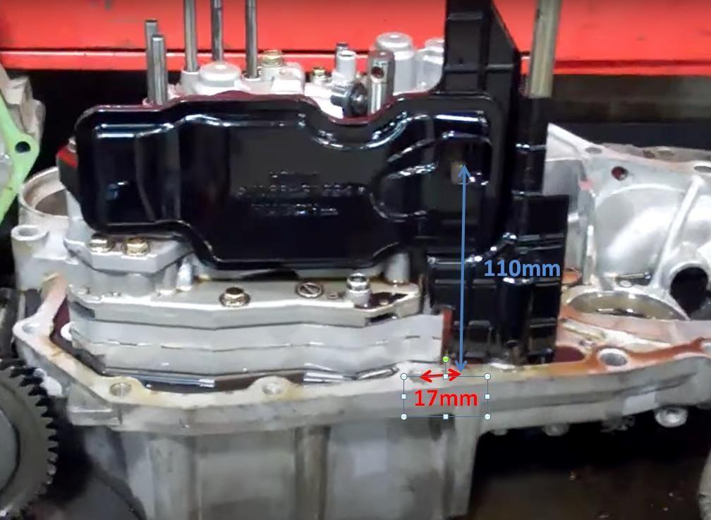 Finally, the holes location: it should be 17mm towards the rear of the car from the center of the second bottom bolt (has a round channel on the casting) and 110mm towards the left of the car from the line where the two transmission case parts meet. While this hole location worked for me, a more precise location could be acquired by all of you who are doing this - chiming in (say: I think it was 2mm more to the right would be better). See picture: