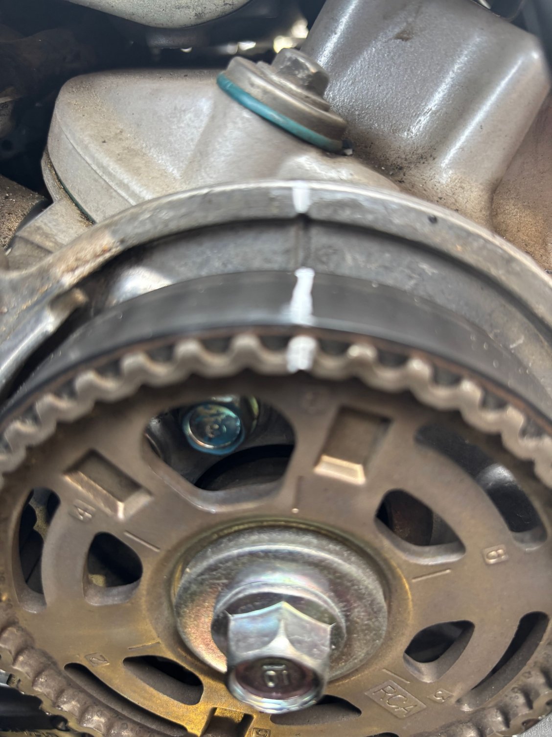 From what I can observe, pictured above, is the TB drive pulley TDC arrow is still 'somewhat' pointing at the oil pump TDC arrow.
