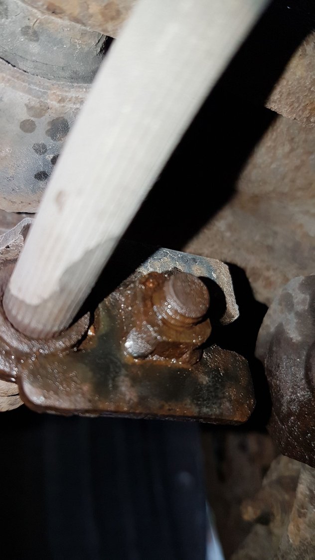 Tried letting it sit with WD-40, and tried the hammer and wrench method. Is there any way to get the caliper off without undoing this bracket? If not, should I start experimenting with heat and or impact tools?