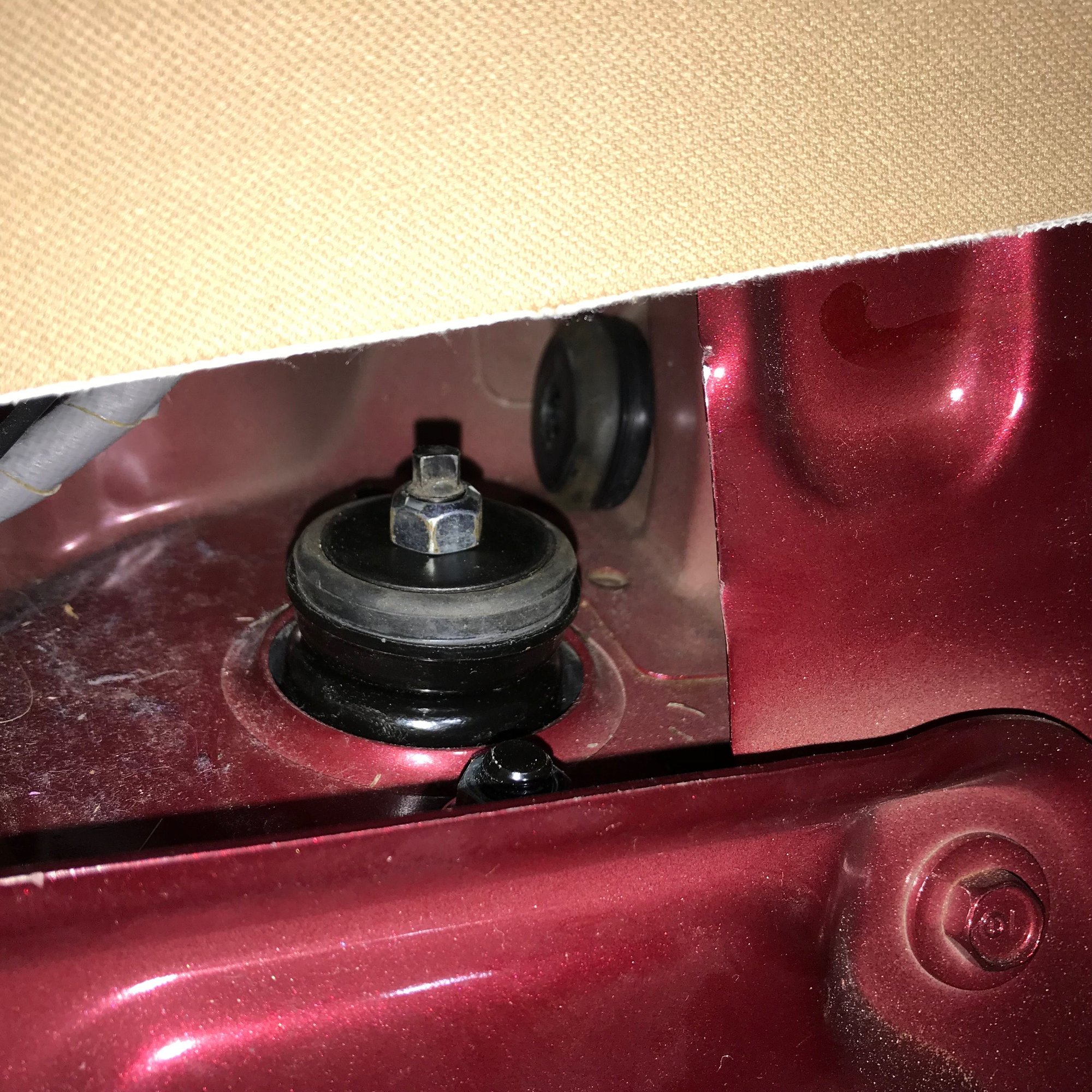 1.What ever you do only release/undo the 2 mounting nuts under the parcel shelf. Undo the bolt hidden by the bulkhead and one the other side of the rubber mount only