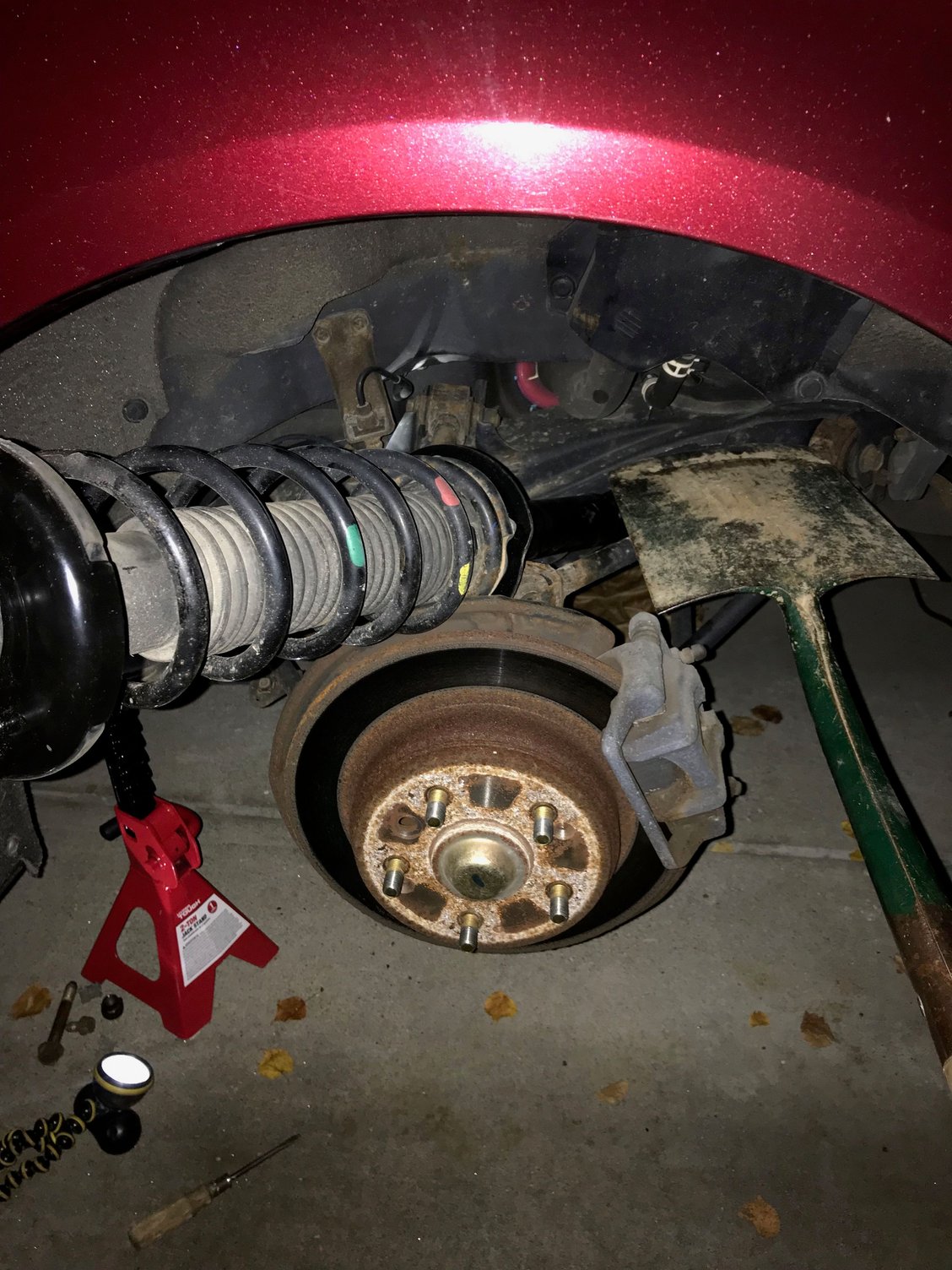 I will not comment on compressing spring and replacing as there are lots of posts and videos on how to do that. I will say that I managed this without air tools and a bit of patience. You will need a breaker bar and sockets though.
