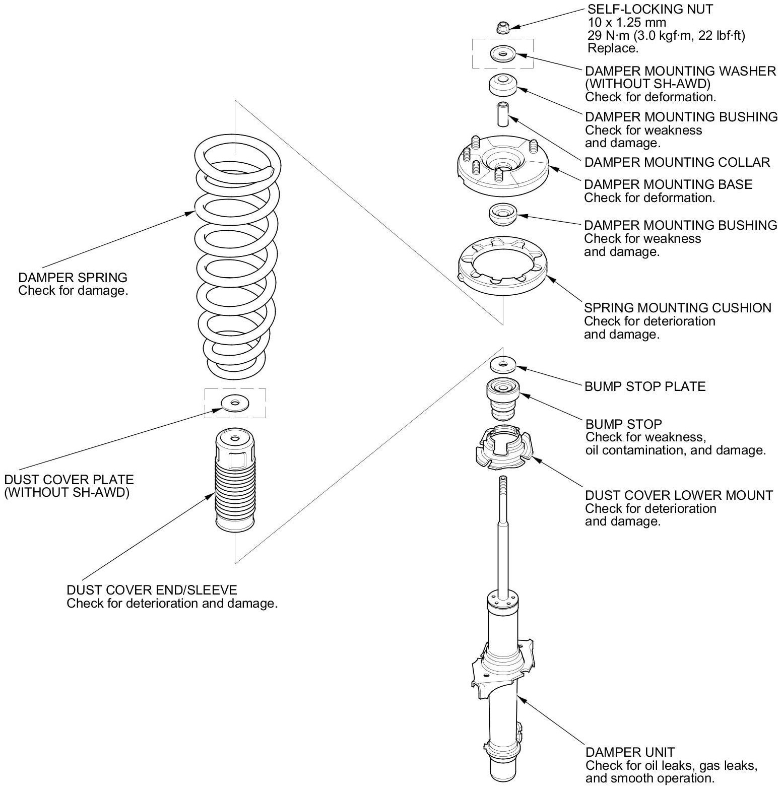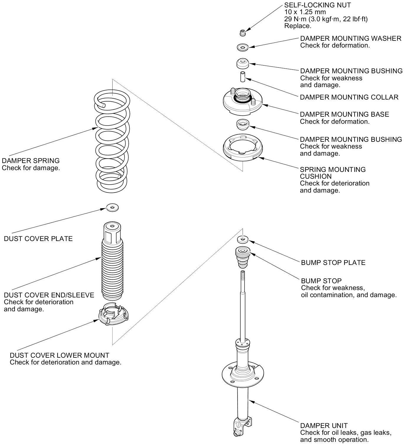 Rear Damper/Spring Disassembly, Inspection, and Reassembly Exploded View