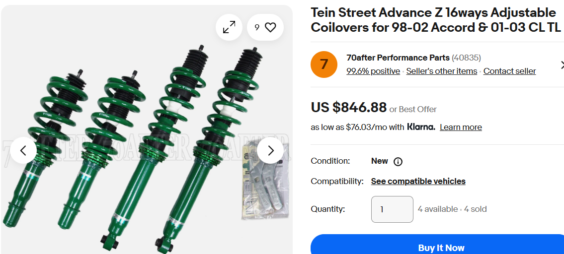 However, I got lucky when the Tein Flex Z VSH94-CUSA3-C's became available again and for a difference of $46.01 in price, I did not have to 'dick' around with compiling / constructing / the expense of any other accessory strut components.