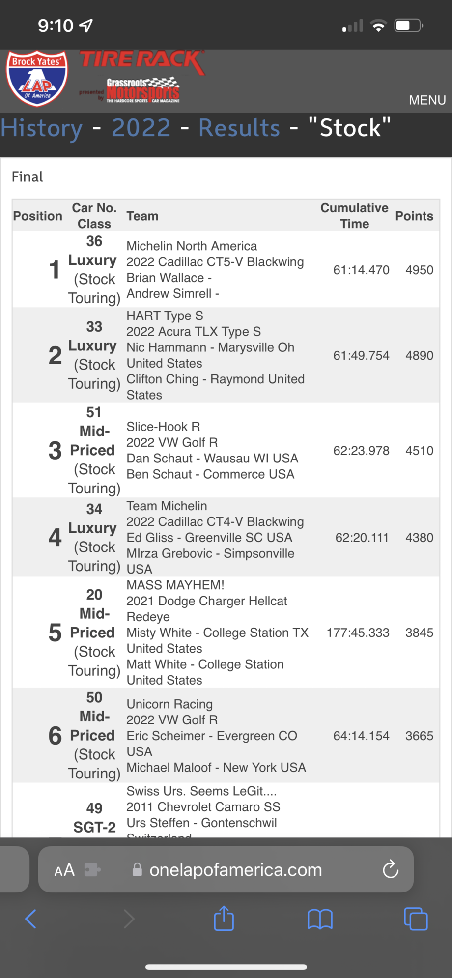 It looks like it finished with the TLX Type S finishing between the CT5V BW and CT4V BW. I was surprised to see it edge out the CTV5 BW in a couple of events. I wonder if the CT5V was combating heatsoak.