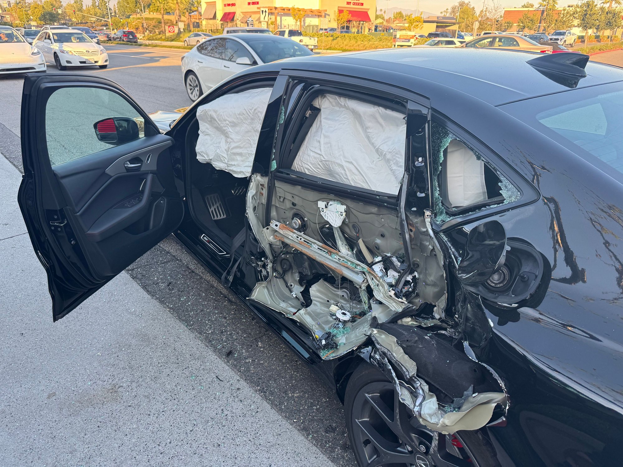 Thank you. Very sore, and bruising, but nothing more at this point. Happy to be breathing and that it was the rear door that was hit, not mine. The car managed the impact very well with regards to me. But it looks like it sacrificed itself in the process.
