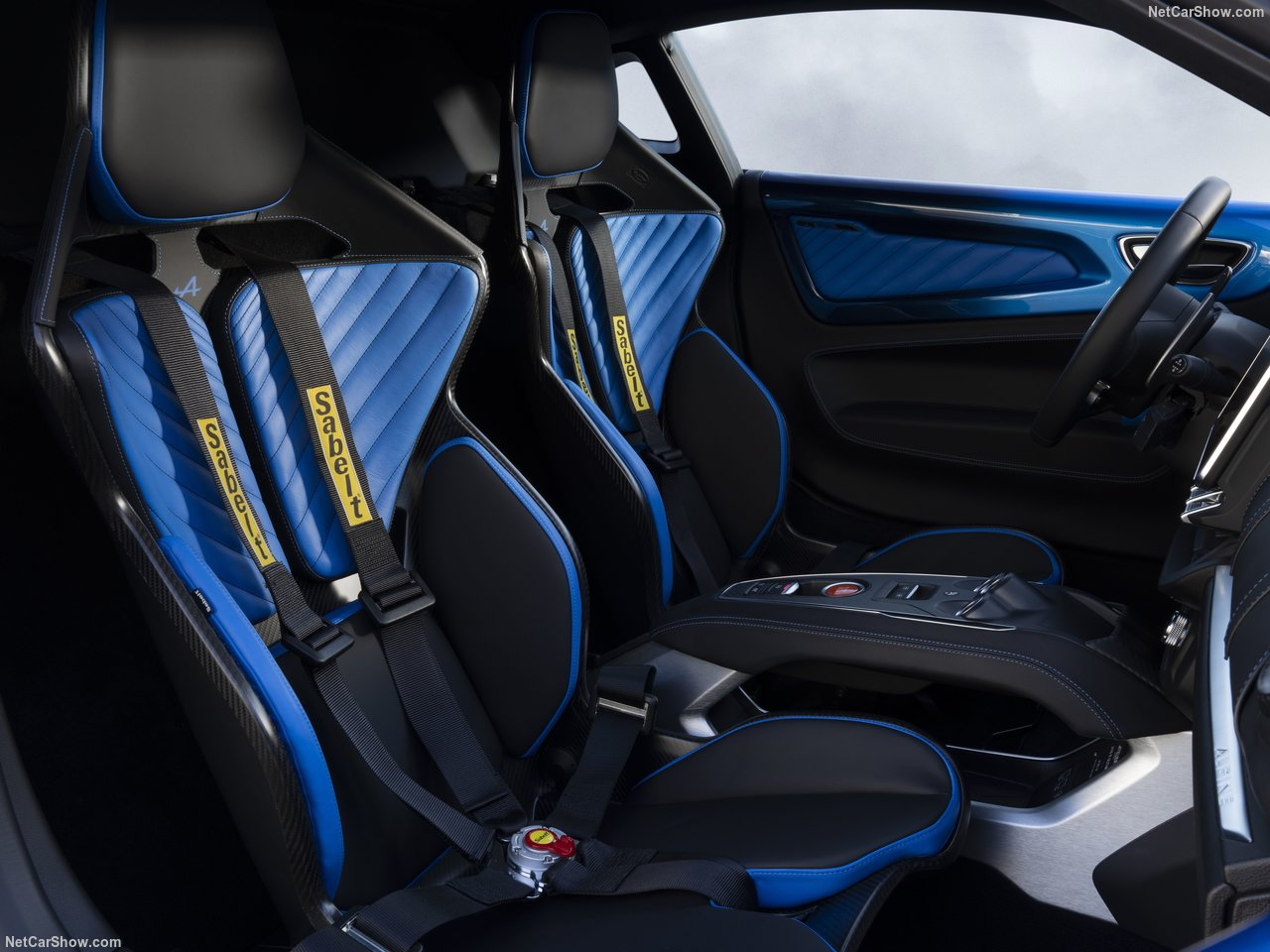 At the rear, ‘X’ shaped LED tail lights with dynamic turn indicators give the car a highly modern look, while the sloping, wrap-around rear screen reminds us of Alpine’s past models.