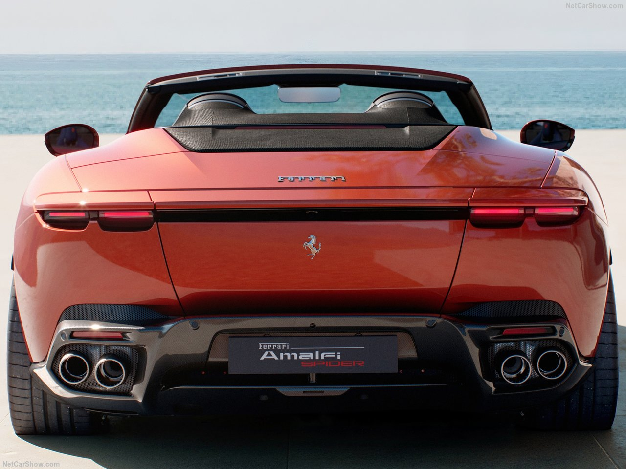 At the rear, the Ferrari Amalfi Spider is equipped with a mobile wing that is perfectly integrated into the tail of the car, which permits three active configurations (Low Drag or LD, Medium Downforce or MD, and High Downforce or HD). which adjust automatically in accordance with the speed and the longitudinal and transverse acceleration of the car. In the HD configuration, the wing generates up to 110 kg more load at 250 km/h, with a drag increase of less than 4%; the MD configuration, meanwhile, helps to develop the downforce, with a quicker transition to maximum opening. A 20 mm high integrated nolder completes the rear axle, helping to recompress the flow in minimum resistance conditions.