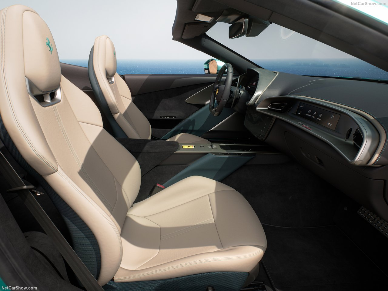 The performance increase compared to the Ferrari Roma Spider was achieved through an advanced turbocharging management system, enabling independent control of the rotational speed of the two turbochargers with dedicated calibration and an increase in the maximum turbo speed up to 171,000 rpm. This approach improves throttle response and boosts pressure control precision, also thanks to the introduction of dedicated pressure sensors for each cylinder bank. The new engine control unit, already used in models such as the 296 GTB, Ferrari Purosangue, and Ferrari 12Cilindri, has allowed the engine's full potential to be harnessed.