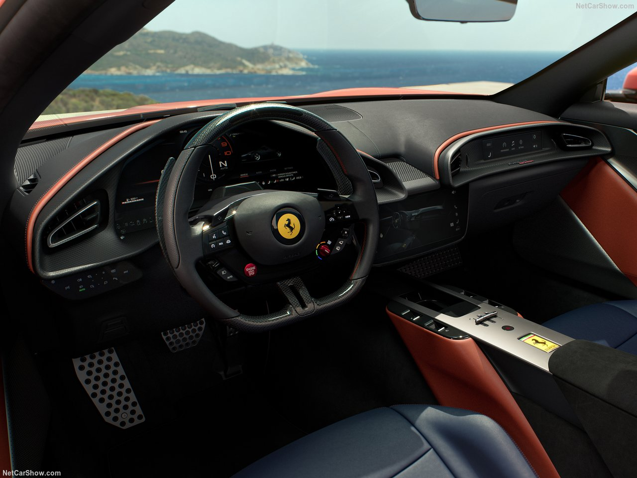 The eight-speed dual-clutch oil-bath transmission, first introduced with the SF90 Stradale to widespread acclaim, has been further optimized with a more powerful control unit and deeper integration with the engine software, improving shift smoothness and speed.