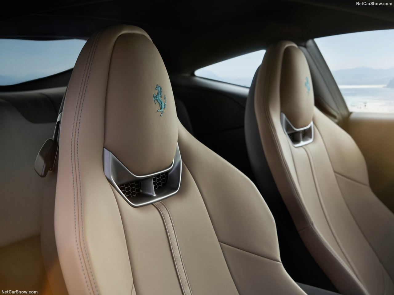 Inside, the Ferrari Amalfi adopts a dual-cockpit layout that envelops both driver and passenger in two visually connected cells, linked by the dashboard, door panels, and central tunnel. The cocoon effect is enhanced by a faceted surface that breaks the symmetry and highlights the central touchscreen display, creating a formal interaction between the two occupants. The interior design has been simplified to achieve a clean and contemporary language, with extensive use of premium materials and integrated technological solutions.