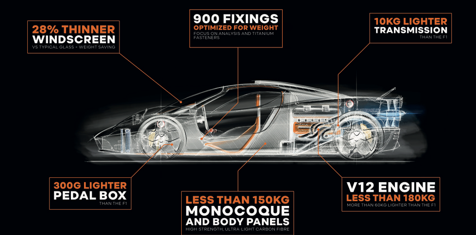 Weight has been carefully saved almost everywhere, from optimizing the size of individual bolts and fasteners rather than using off-the-shelf items, to larger assemblies. "It's 31 years since I picked up the pencils to start drawing the F1, and stuff has moved on dramatically," Murray said. The T.50’s Cosworth-built V-12 is set to be around 154 pounds lighter than the F1’s BMW V-12 and its X-Trac gearbox 21 pounds lighter than the transmission in its illustrious predecessor.