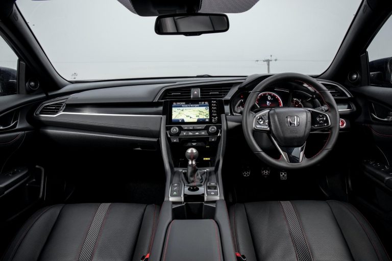 Inside, sporty-flavored upgrades include red stitching on the seats, steering wheel, gear shift boot and door panels, as well as drilled aluminum pedals. The list of standard equipment consists of the Honda Connect infotainment system with DAB radio, Apple CarPlay and Android Auto, while the top EX grade adds a reversing camera integrated in the interface.