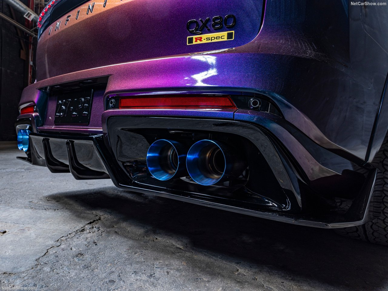 QX80 R-Spec unleashes INFINITI's luxury flagship and makes an adrenaline-pumping statement about how QX80 can excite and empower clients. Following the introduction of the 650-plus-horsepower QX80 Track Spec concept at Monterey Car Week, R-Spec is a far more extreme, no-holds barred study of powerful yet luxurious SUV variants.