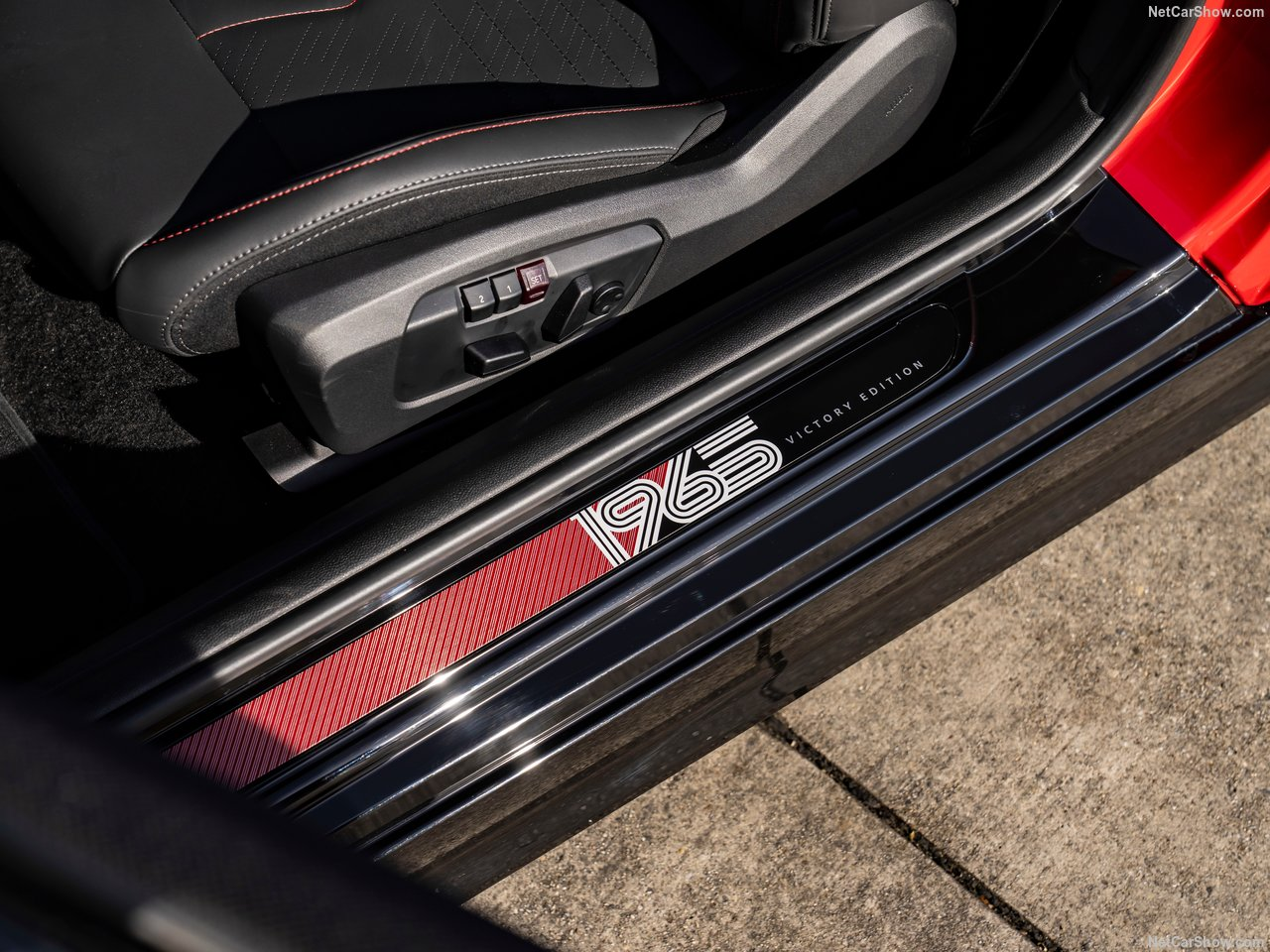 In homage to the legendary motorsports colors of the 1960s, the 1965 Victory Edition impresses in Chili Red exterior paintwork, which is accentuated by a white trim stripe extending from bonnet to the roof and rear, enhancing the vehicle's sportiness even further. As an exclusive trademark of the edition, a white "52" graphic adorns both sides of the vehicle - a reference to the number of the original car displayed from 1965.