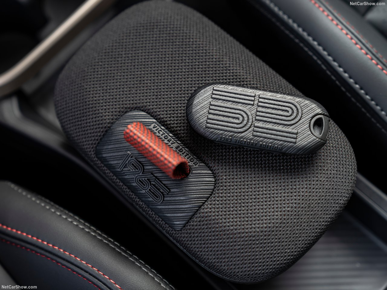 On entering the vehicle, the striking door sill showcase white "1965"- writing on a red and black background immediately catch the eye and bestow the cockpit with an exclusive look. In addition, each model of the edition features a dedication on the inside of the door reflecting information about the bygone rally.