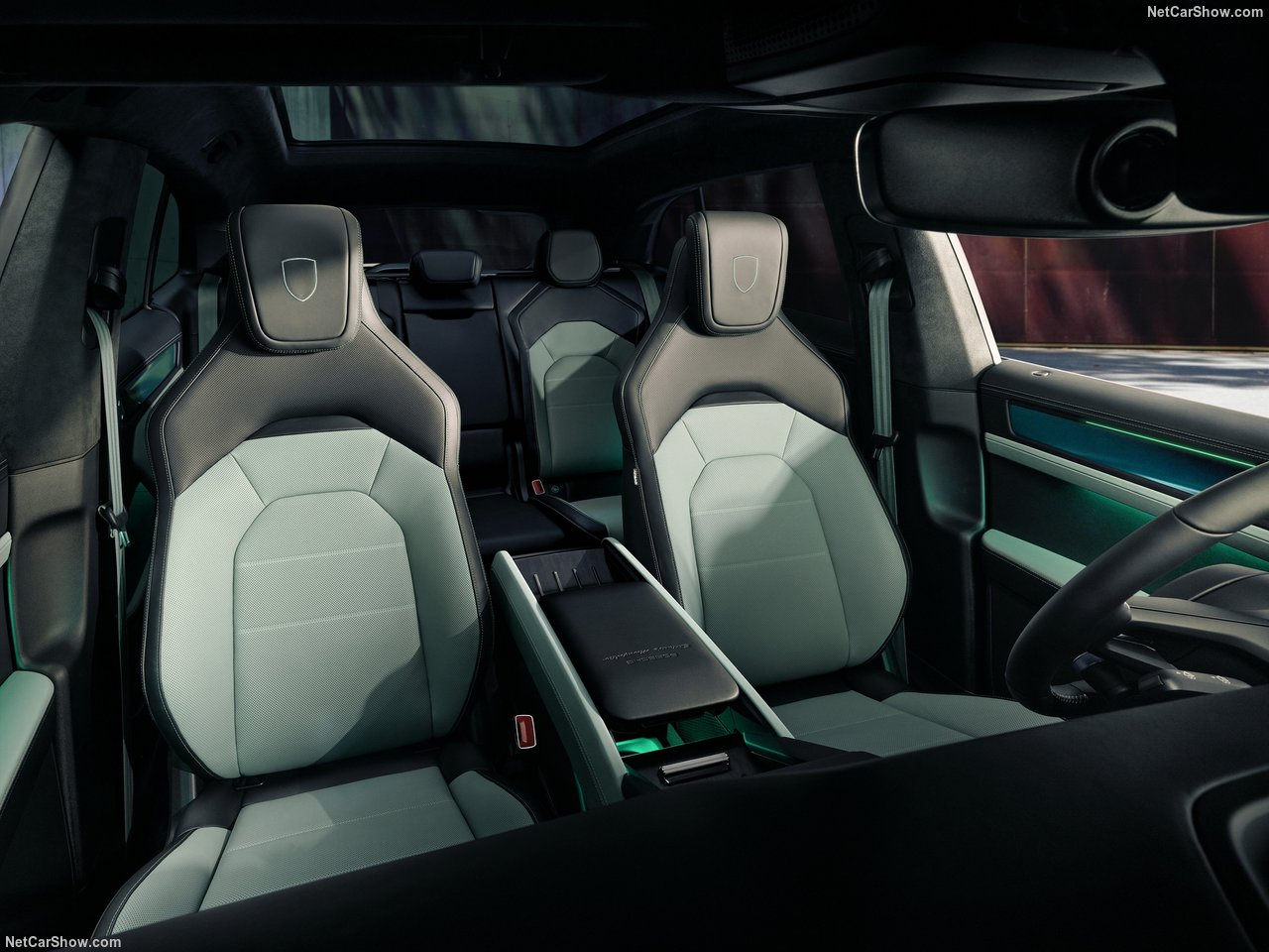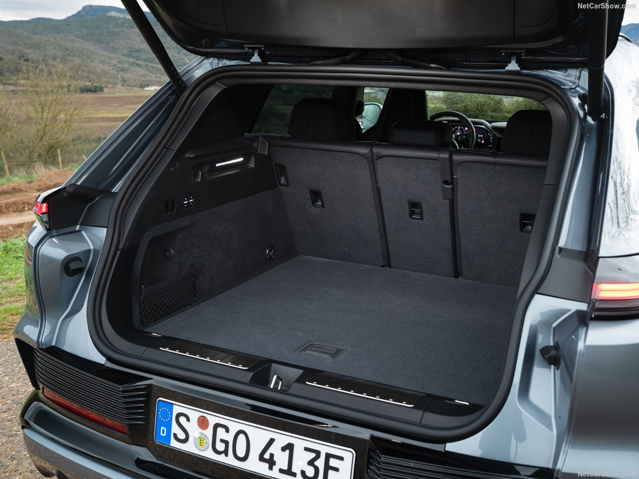 The wheelbase, which is significantly longer than that of the combustion-engined Cayenne, creates noticeably more space in the rear. The standard electrically adjustable rear seat system allows flexible adjustments between additional space for rear passengers and maximum luggage compartment volume. With the rear seats folded, the load volume increases to up to 1,588 litres, and the total luggage space is supplemented by a 90-litre 'frunk'. The towing capacity of up to 3.5 tonnes, depending on the market and equipment, remains unchanged. A panoramic glass sunroof with Variable Light Control, parking pre-climatisation and fully integrated digital connectivity enhance travel comfort.