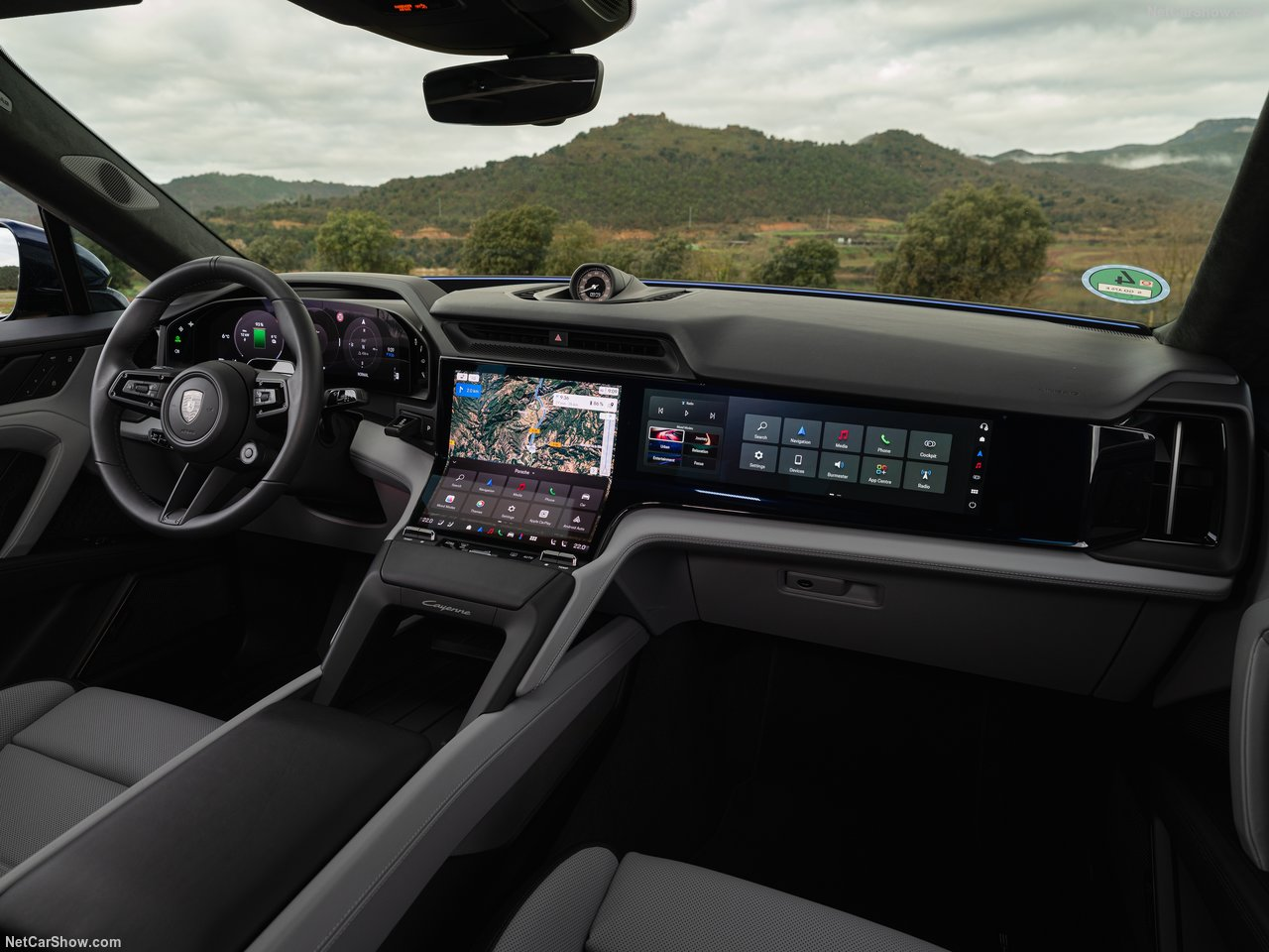 As such, the 2024 Porsche Cayenne will be made available with three different powertrain options. The standard affair includes an "optimized" 3.0-liter turbo V6 packing an additional 13 ponies at 348 hp. This mill is also used for the Cayenne E-Hybrid when combined with a new, more powerful (174 hp) electric motor, and the bundled result is 463 hp. Even better, the battery has also surged from 17.9 kWh to 25.9 kWh, and there's also a new onboard charger sipping up to 11 kW from AC outlets.